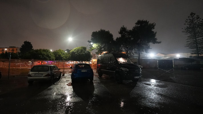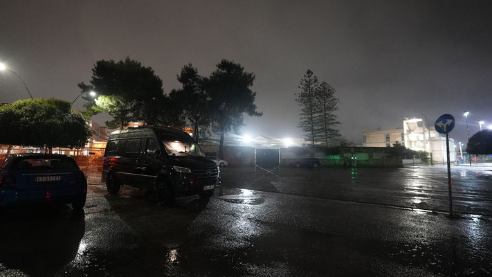 Überlegt hatte ich, heute Abend noch nach Lecce rein zu gehen. Bei Dunkelheit. Doch bin ich a) zu platt und b) nimmt der Regen mir die endgültige Entscheidung ab. Es beginnt deutlich auf unseren Van zu plätschern. Und bei Regen, bin ich raus. Somit bleibe ich wo ich bin: am Laptop und schneide. Bekomme das Video gegen 23 Uhr fertig, rendere es und mache Feierabend. Co-Pilot und Friedrich natürlich noch nicht müde, hatten ja eine super Nacht, doch als ich sie vor die Wahl stelle, selber laufen oder jetzt ins Bett getragen werden, sind sie doch plötzlich müden. Also ab ins Bett mit uns allen.