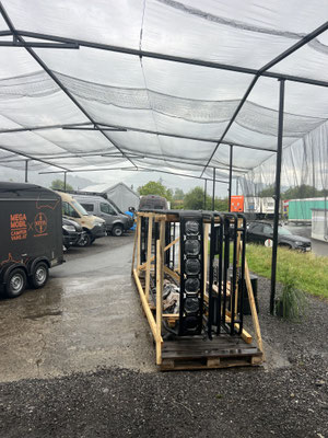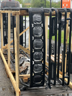 Ansonsten beschäftigen wir uns auch noch mit Dachträgern die auf Fahrzeuge müssen. Mit Hilfe eines Staplers bekommen wir das zu Dritt gut hin, auch wenn es ein zeitintensiver Akt ist.