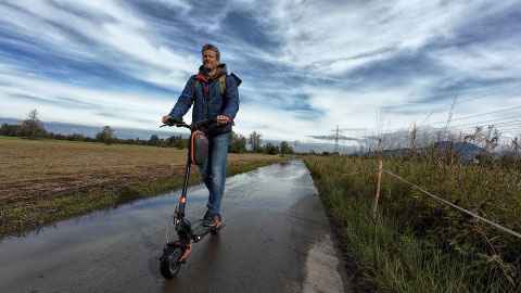 der Morgen wie immer. Erst um 10 Uhr wird es anders. Erstens scheint etwas die Sonne und es ist trocken, zweitens steht mein eScooter vor der Tür. 10 Km liegen vor uns. Mit ihm soll es zu Nutzfahrzeuge Haubner in Lustenau gehen, den KaiMAN abholen. Der ist soweit fertig und abholbereit.