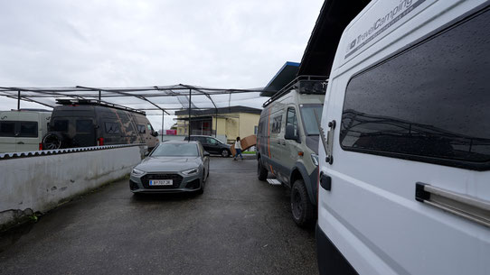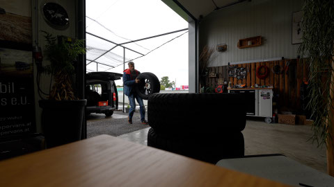 Die Räder liegen rum, mit Hilfe des super netten Disponenten räumen wir die 4 Reifen und 4 Räder schnell in den Minivan und dann düse ich zurück zu Mona und Niko. Dankeschön für die Hilfe!