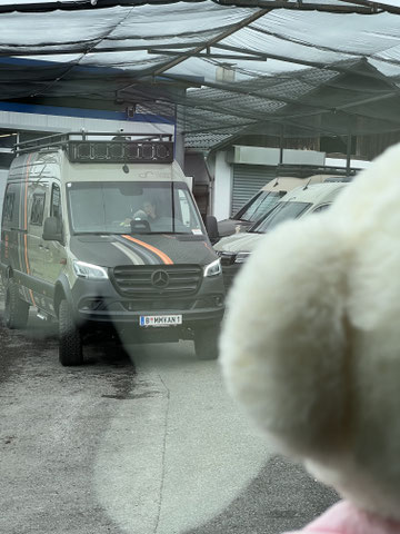 Gegen 13 Uhr düsen wir los in Zottl. Zurück zu Mona und Niko. Dort treffen wir gegen 14:45 Uhr ein. Zwei Autos bekommen sie gerade geliefert. Ein weisser MAN TGE 680 4x4 mit Superhochdach als Re-Aktiv. Weiss...hm...ich glaub, wenn man da noch etwas dunkle Folie dran pappt und ein paar dunkle Anbauten, dann wird daraus ein richtig cooler Van! Fahrzeug ist ab Hof zu verkaufen. Sofort verfügbar.