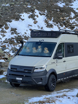 So fahren wir vom Pass runter in Richtung Innertkirchen, Berner Oberland. Herrlich Fahrt. Nix los, 4x4 Proyect Fahrwerk macht einen schönen Job auf der Passstraße. Geht super durch die Kurven. Kein wanken oder zucken, wie auf Schienen. Cool! Der Pass gut ausgebaut, somit mit einem MAN TGE 680er kinderleicht zu fahren.