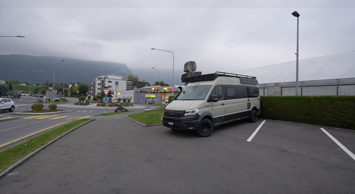 Bei Richterswil kurzer Stopp bei Burger King. Hunger. Ich hol mir nen Burger, esse in Zottl. Und ich muss sagen: immer wenn ich auf den KaiMAN zulaufe und ihn da stehen sehe, so groß, stark, schick und cool....muss ich immer wieder grinsen und mich freuen. Ein klein wenig stolz ist unser Team schon auf dieses coole Fahrzeug, dass wir mit all unseren tollen Partnern auf die Beine gestellt haben. Um so trauriger ist es, dass wir nun wieder nicht damit los kommen und zeigen können, was im KaiMAN steckt und ob alles hält und funktioniert was verbaut ist. Es ist zum Mäuse melken!