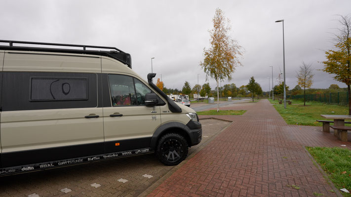 Es wird Mitternacht, mit 85 km Restweite rolle ich an eine Tank bei Hannover und fülle wieder 60 Liter rein. Zurück auf die Autobahn...aber Hamburg oder DK erreichen wir heute nicht. Zu müde, zu kaputt...mir fallen die Augen zu und ich hab zu kämpfen. Irgendwo zwischen Hannover und Hamburg setzt ich den Blinker. Zu müde um einen Spot abseits der Autobahn zu suchen, wir parken heute auf einem Autobahnparkplatz, Abelbeck-Kuhbusch Süd. Muss es tun. Nicht romantisch oder schön, aber praktisch und wir verlieren keine Zeit. Heute und die nächsten Tage heisst es flott Kilometer machen. Wir wollen ja hoch in den Norden.