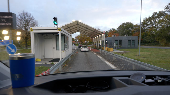 Irgendwann kommen wir im Stau an die Verengung, niemand arbeitet, die "Baustelle" ist verlassen. Der Belag fertig. Der Verkehr läuft wieder und wir erreichen ne Stunde später Flensburg. Dort fahre ich von der Autobahn ab, tanke für 1,52 Euro. Diesel in Dänemark deutlich teurer, bei rund 13 Kronen, also so 1,70 EUR. Voll machen. Da noch nicht leer und der Tank nicht groß, packt Friedrich das ganz gut. Kein Drama. Für letzteres sorge ich.