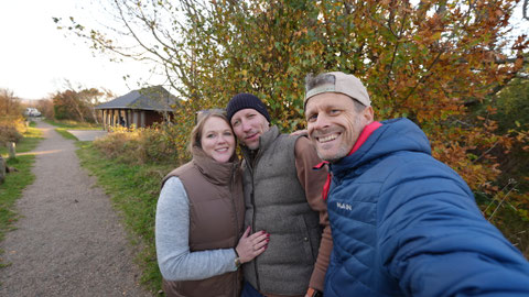 Ich parke, die Sonne da und ider Co-Pilot meint: Drohne hoch! Das reicht. Auf den Sandhügel laufen müssen wir ja dann nicht.