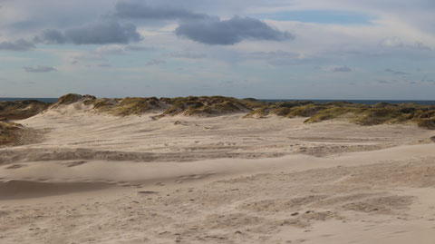 Die nächsten 90 km haben wir Asphalt unter den Rädern. Je nördlicher wir kommen, desto besser wird das Wetter. Unser Ziel: der Sandhaufen Råbjerg Mile, eine riesige Wanderdüne 20 km vor Skagen.
