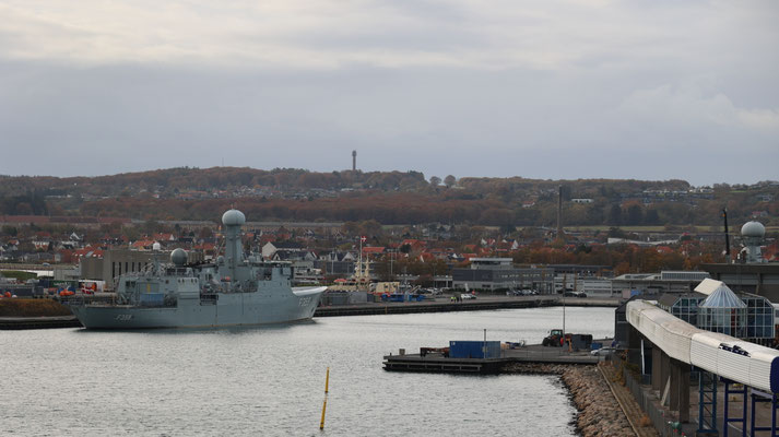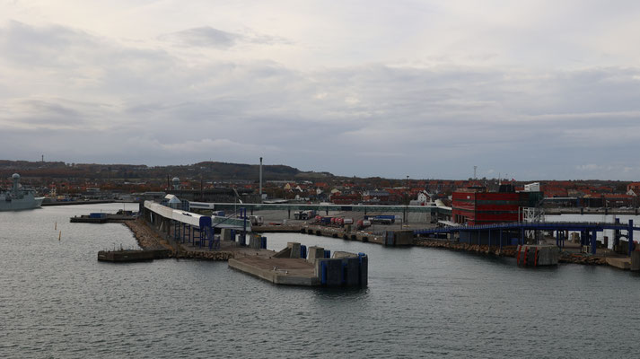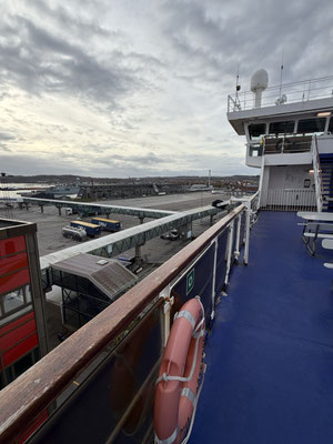 Nix wie an Deck. Sonnendeck....das klingt gut, auf Level 9 trete ich vor die Tür, keine Sonne, alles Betrug! 20 Minuten später legen wir ab. Mit Blick auf Frederikshavn, die Berge dahinter, die Militärschiffe im Hafen. Schöne wars...leider viel zu kurz...aber jetzt auf nach Schweden.