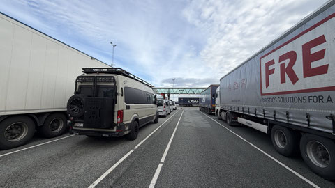 Ich schweife ab....mir wird langsam etwas warm, keine Panik aber ich spüre den Druck, den Pass zu finden. Ohne kommen wir nicht aufs Boot. Dann legen die in einer h ohne uns ab. Und wir....wir müssten über Landweg und Brücke nach Schweden. Oh nee....ich muss den Reisepass finden. Ich WEISS ich hab ihn dabei. Irgendwo auf den 680 cm plus Kreavans Anbauteile muss der Pass sein. Das gibts doch nicht! Wo steckt das Ding!?