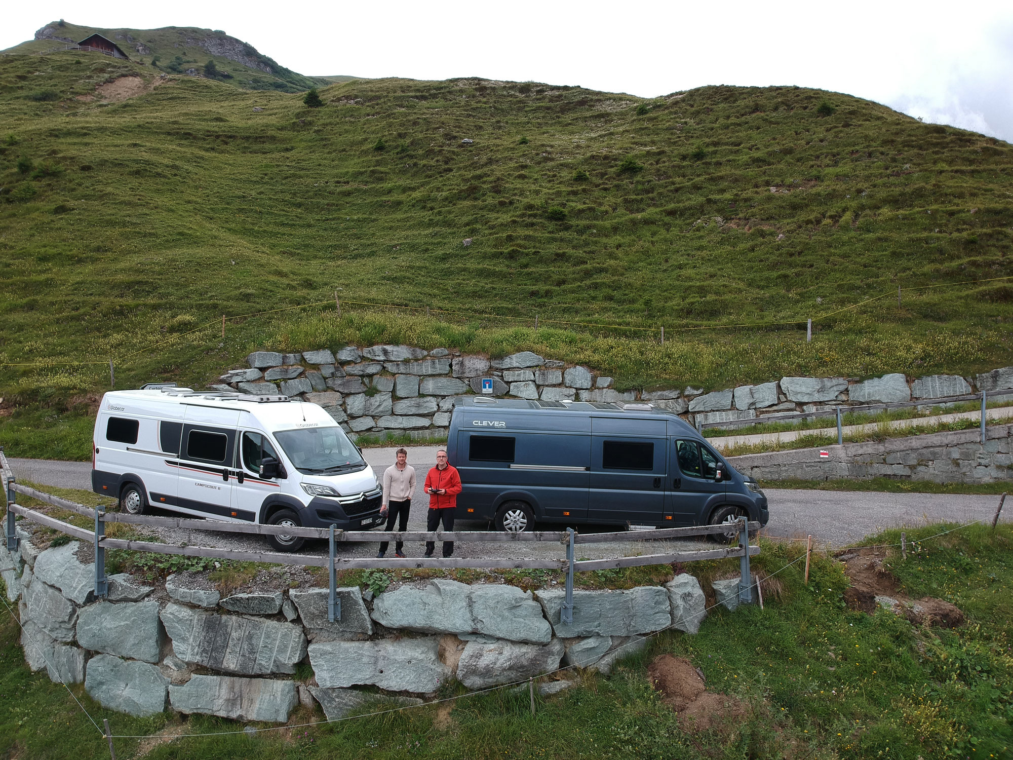 Wir fliegen, filmen uns beim Fahren und verabschieden uns im Tal. Ich begebe mich anschließend wieder in die Höhe, in Richtung Lago di Lei.